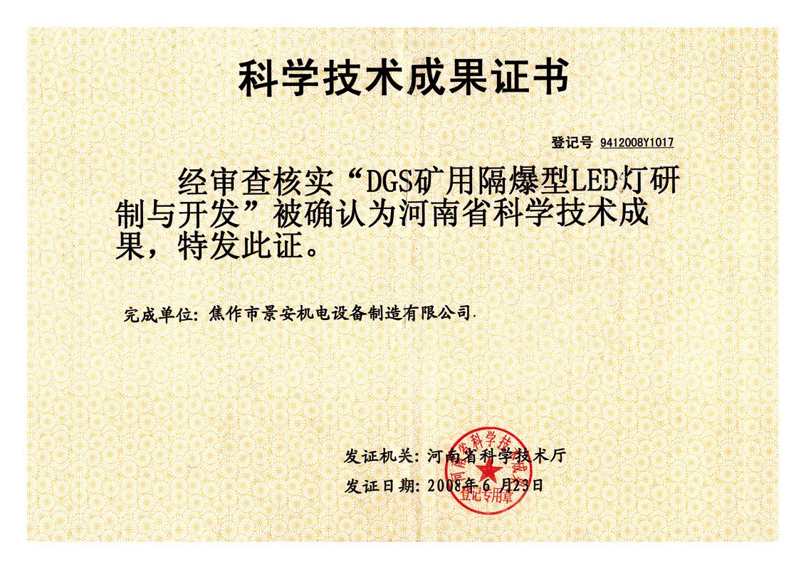 LED燈焦作市科學技術進步獎