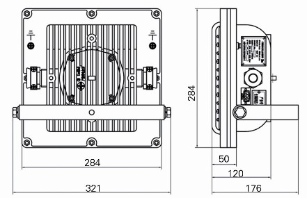 該燈具配有可調(diào)安裝架和4個M8的安裝螺孔,方便用戶安裝燈具和調(diào)整照明方向、角度。